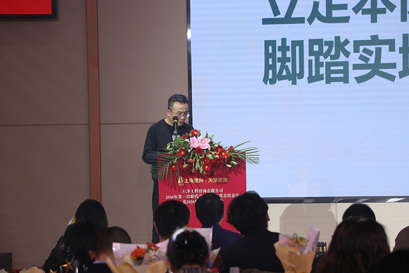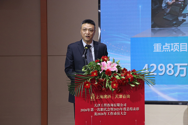 公司党委副书记、总经理朱震作2025年度工作报告,动员部署2026年重点工作任务。2025年,天津咨询在上海建科咨询集团、天津国兴资本双方股东的坚强领导与支持下,新班子强化党建引领,锚定全年目标,紧紧围绕“融合发展”工作主基调,全力推进“二稳六进三破局”措施落实,团结带领广大干部职工凝心聚力、踔厉奋发,完成主要绩效考核目标,发展基础更加稳固,创新机制日趋完善,运行质量稳步提升,为“十五五”高质量发展奠定坚实基础。2026年,将重点抓好“五个聚焦、五个强化”重点任务,全力推动“十五五”发展规划实施,努力实现2026年各项工作目标任务,进一步解放思想、开拓进取,协同奋进,聚力启航,全力以赴开启“十五五”高质量发展新篇章。