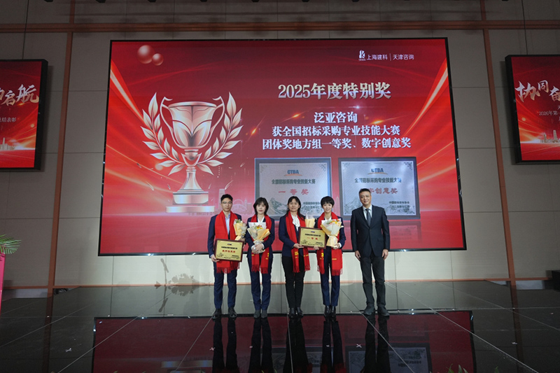 会上,公司对2025年度涌现出的优秀个人与集体进行了表彰。他们中既有在专业领域深耕细作的咨询师、工程师、招标师、造价师,也有在管理、职能、项目一线担当作为的业务骨干;既有闪耀着个人光芒的“最美奋斗者”,也有凝聚团队力量的优秀集体与优胜单位。会上还特别嘉奖了在全国招标采购专业技能大赛中斩获一等奖的泛亚咨询“津采飞扬”代表队,他们以卓越表现为公司赢得崇高荣誉,展现了天咨人的专业实力与拼搏精神。